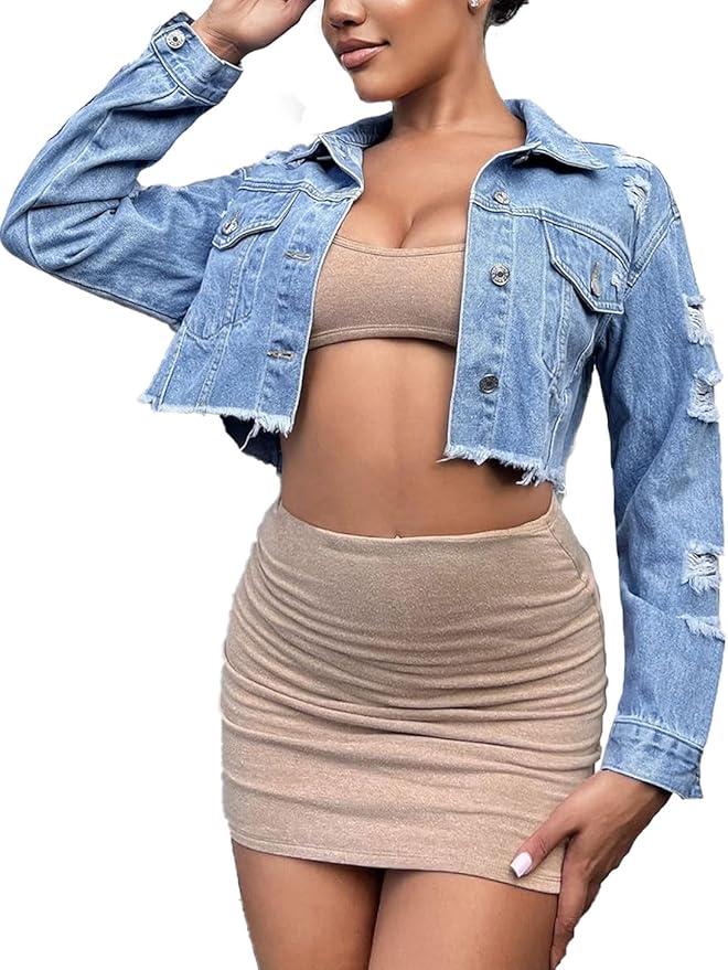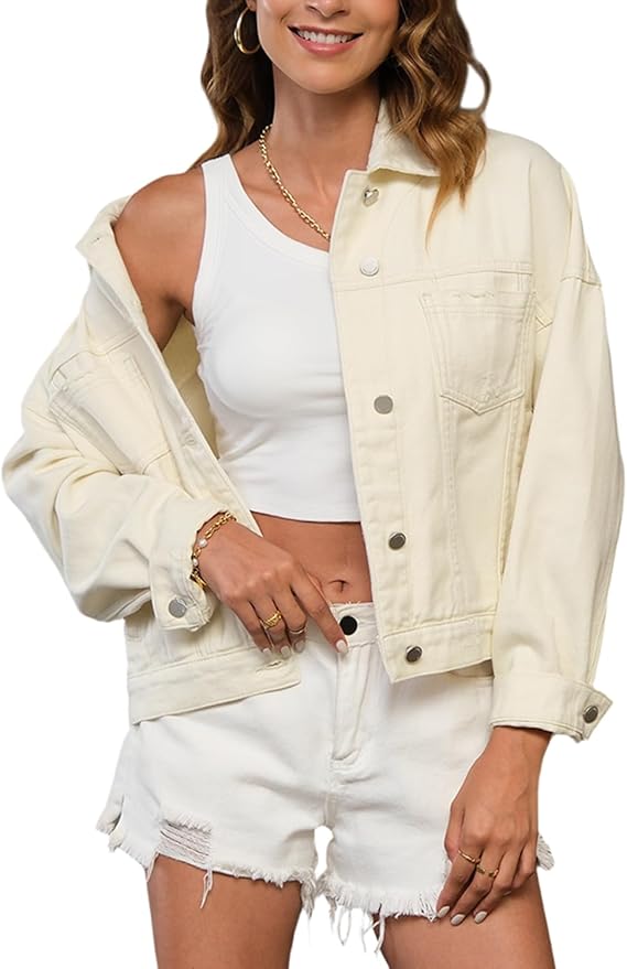 Women's 2024 Crop Denim Cap Sleeve Slim Fit Summer Jean Jacket