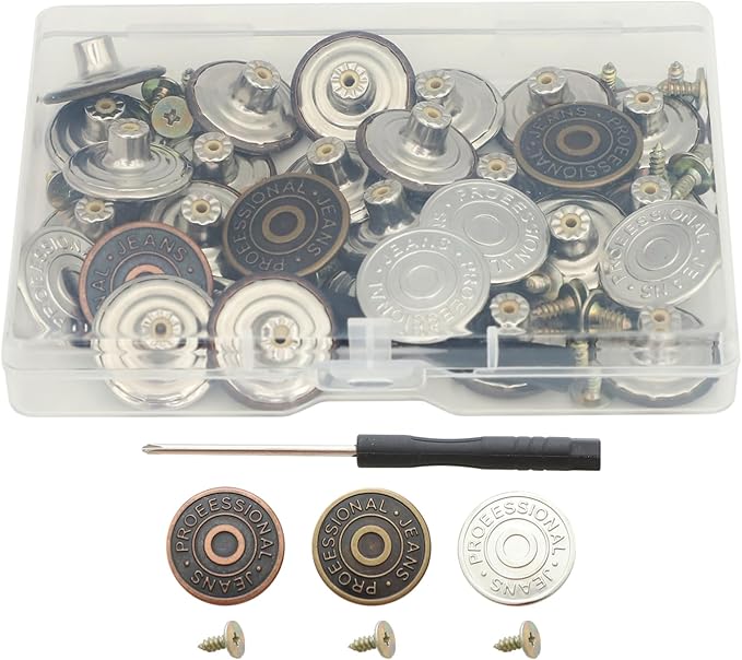 30 Sets Jeans Metal Buttons with Metal Base and Setter Tool Replacement Jean Buttons Button Pins for Jackets Denim Skirt DIY